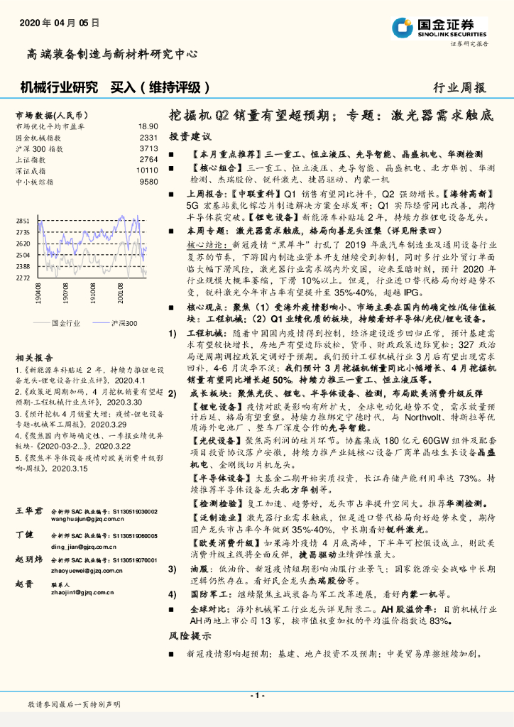 国金证券:机械行业研究周报:挖掘机Q2销量有望超预期;专题:激光器需求触底.pdf