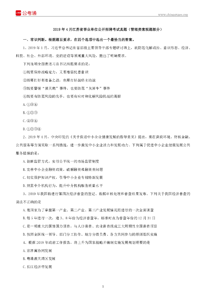 2019年4月江苏省事业单位考试真题(管理类客观题部分).pdf