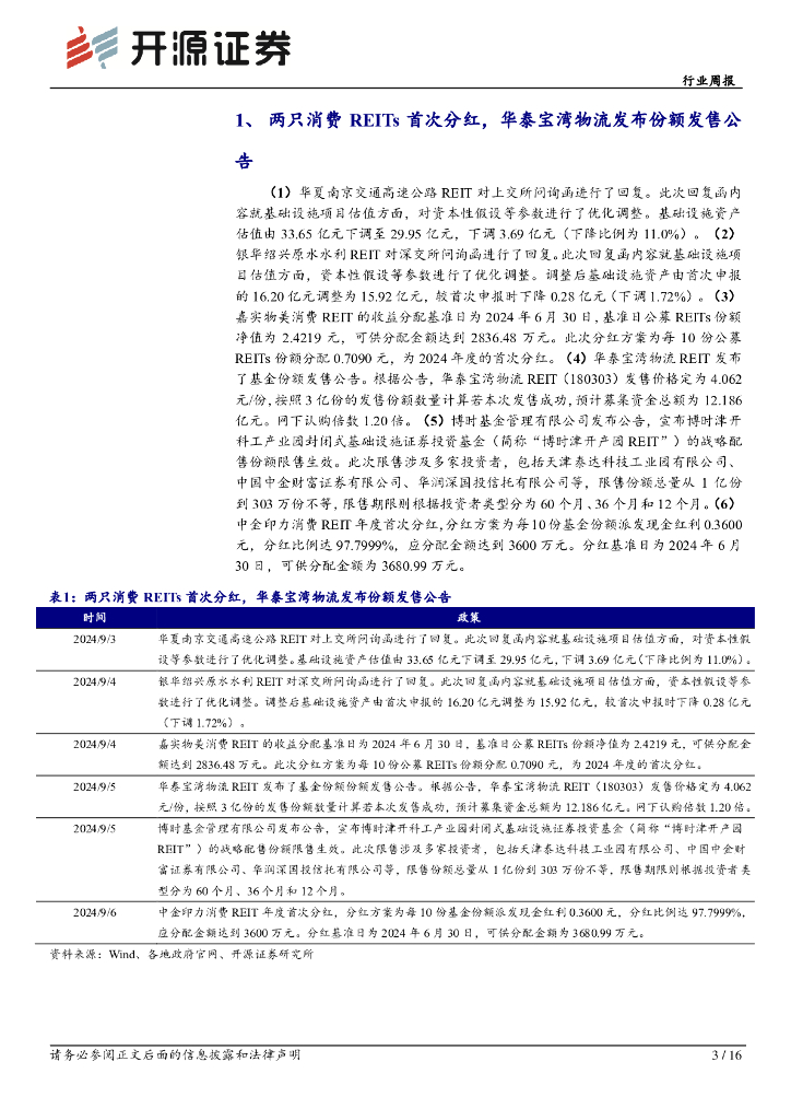 开源证券:REITs行业周报:两只消费REITs首次分红,保障房、消费REITs单周表现优异.pdf
