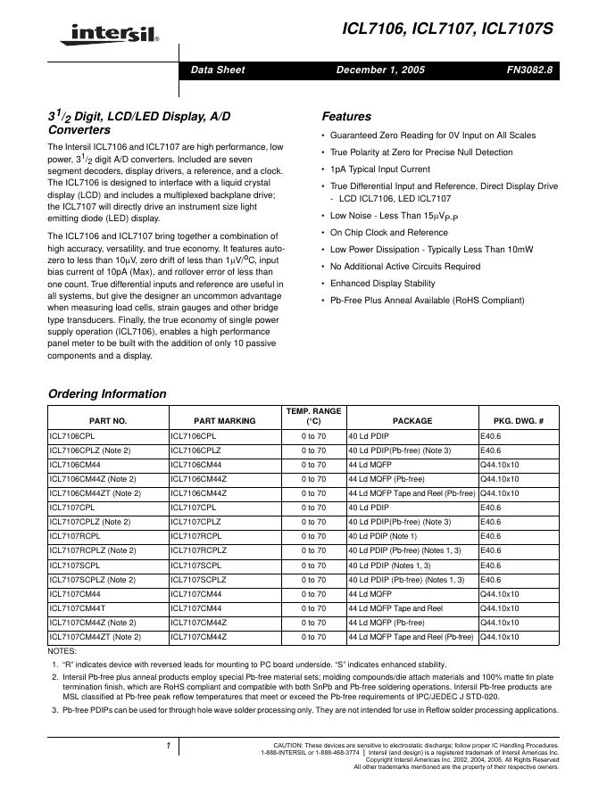 INTERSIL ICL7106, ICL7107, ICL7107S 数据手册.pdf