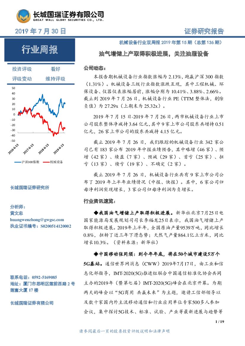 长城国瑞证券:机械设备行业双周报2019年第15期(总第136期):油气增储上产取得积极进展,关注油服设备.pdf