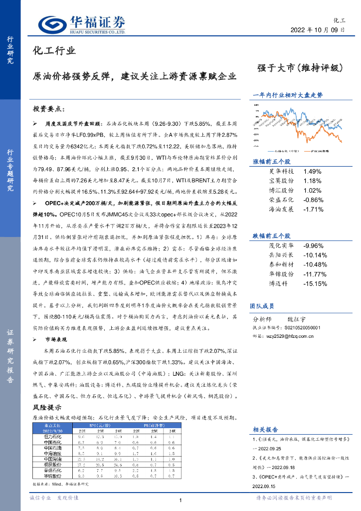 华福证券:化工行业:原油价格强势反弹,建议关注上游资源禀赋企业.pdf