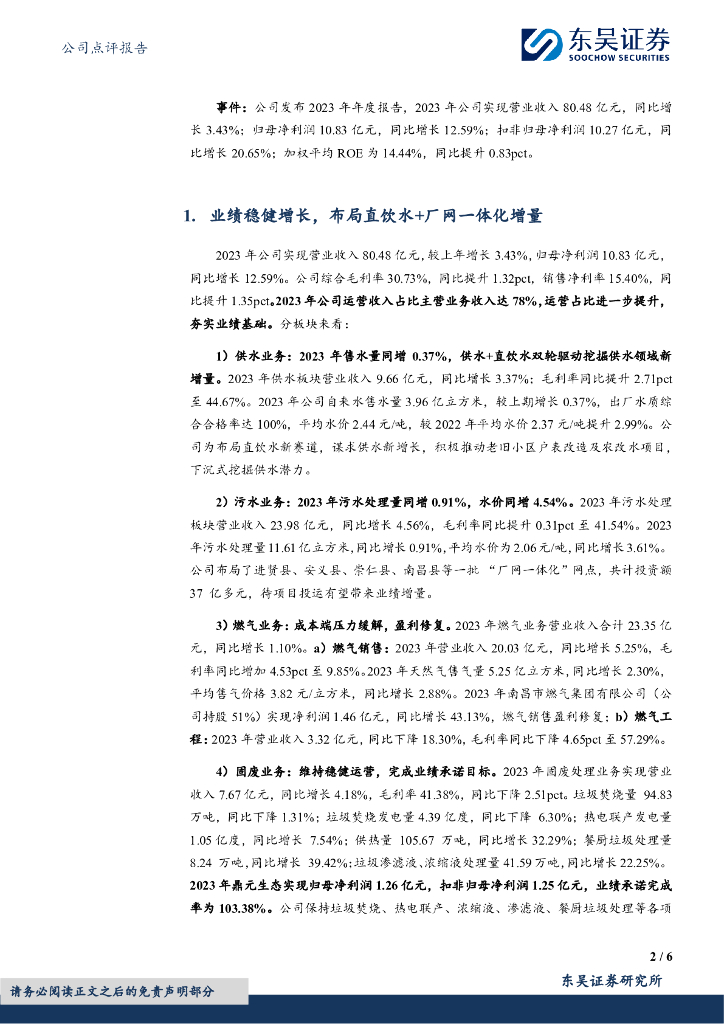 东吴证券:洪城环境(600461)-2023年报点评:业绩稳健增长,分红承诺展期.pdf