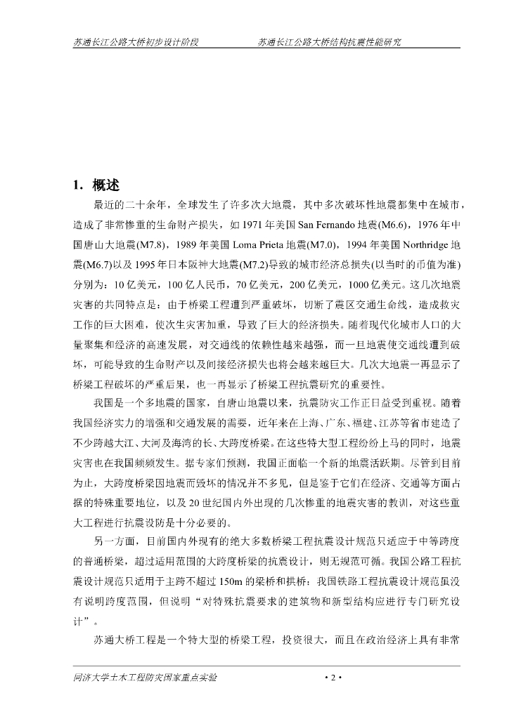 苏通长江公路大桥抗震性能研究(1088m双塔斜拉桥).doc