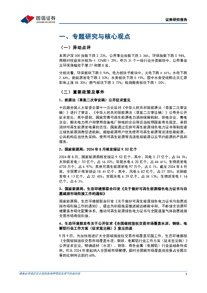 国信证券:公用环保行业202409第3期:《能源法(草案二次审议稿)》公布,全国碳市场扩容推进.pdf