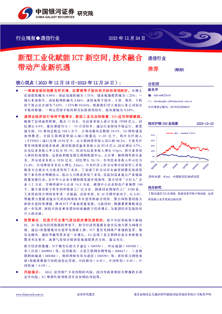 中国银河:通信行业行业周报:新型工业化赋能ICT新空间,技术融合带动产业新机遇.pdf