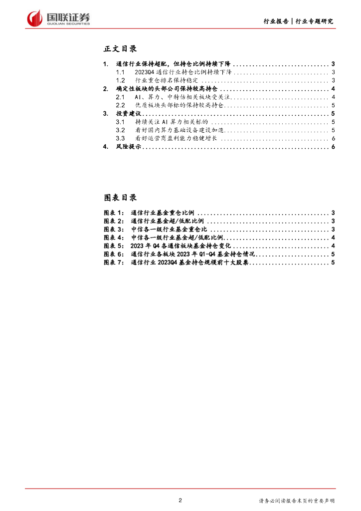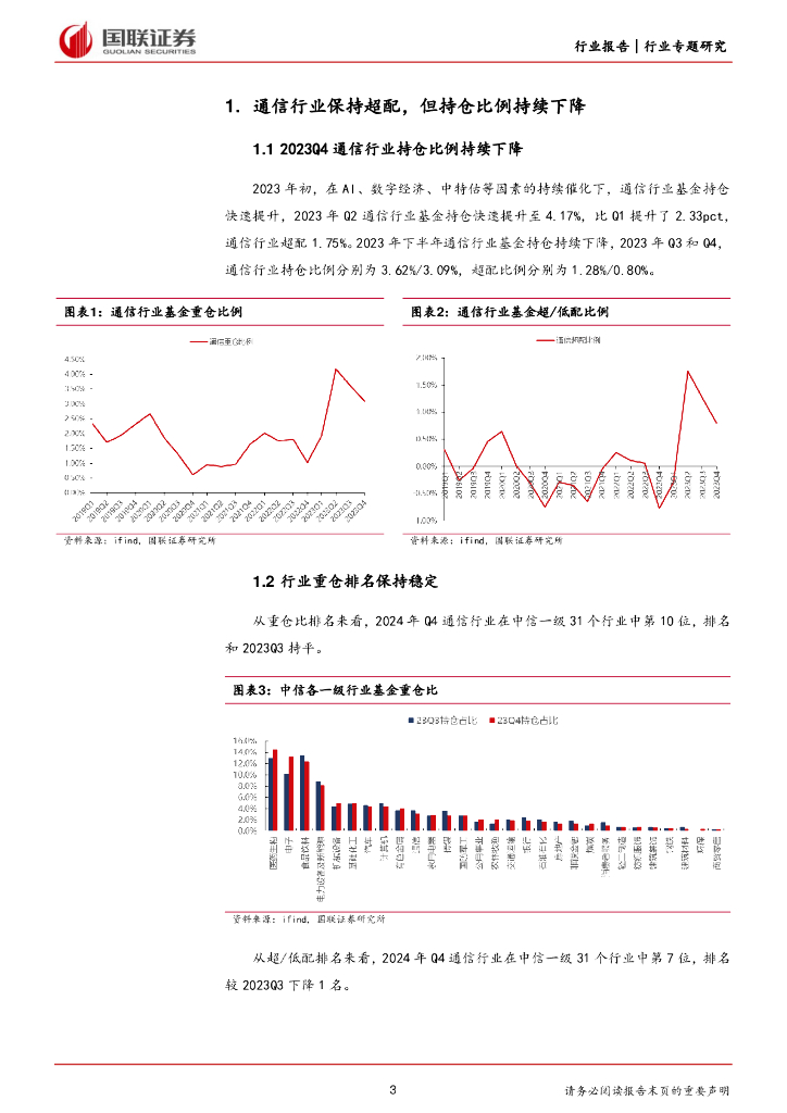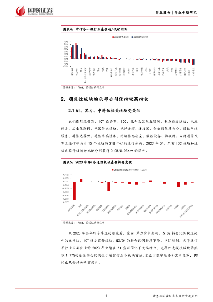 国联证券:通信行业2023Q4基金持仓分析:行业持仓下降,光模块和运营商板块受关注.pdf