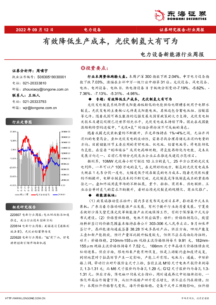 东海证券:电力设备新能源行业周报:有效降低生产成本,光伏制氢大有可为.pdf