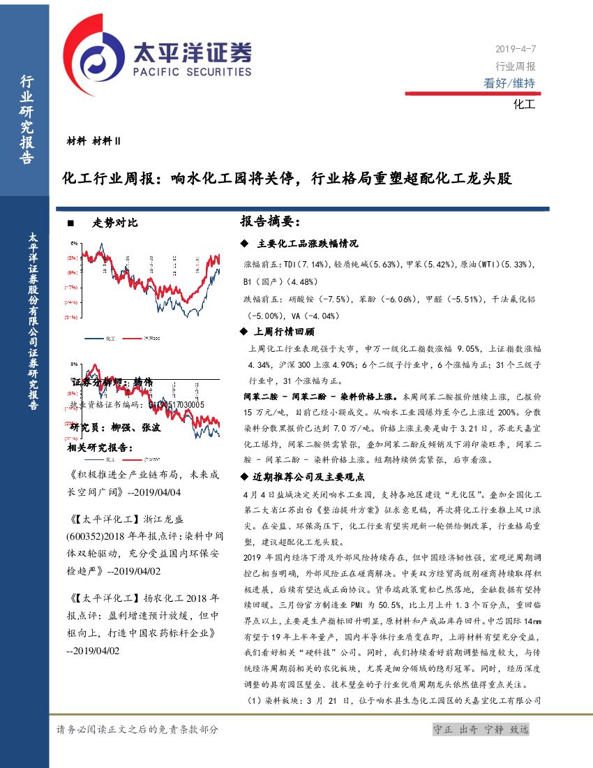 太平洋证券:化工行业周报:响水化工园将关停,行业格局重塑超配化工龙头股.pdf