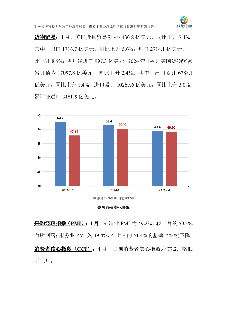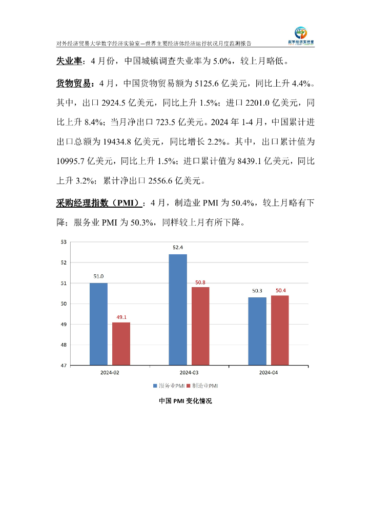 对外经济贸易大学:世界主要经济体经济运行状况月度监测报告(2024年4月).pdf