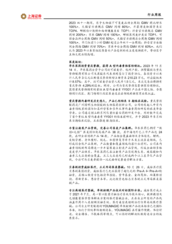 上海证券:美容护理行业周报:国货品牌大促表现亮眼,医美龙头加速拓宽产品矩阵.pdf