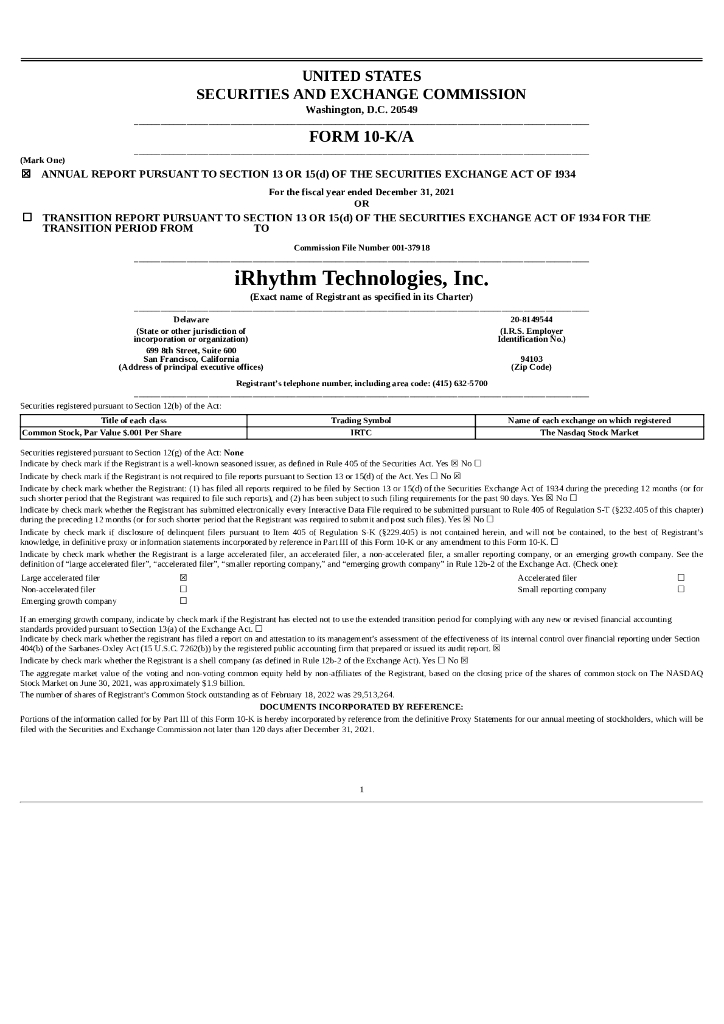iRhythm Technologies, Inc.(IRTC)2021财年年度报告(英文版).pdf