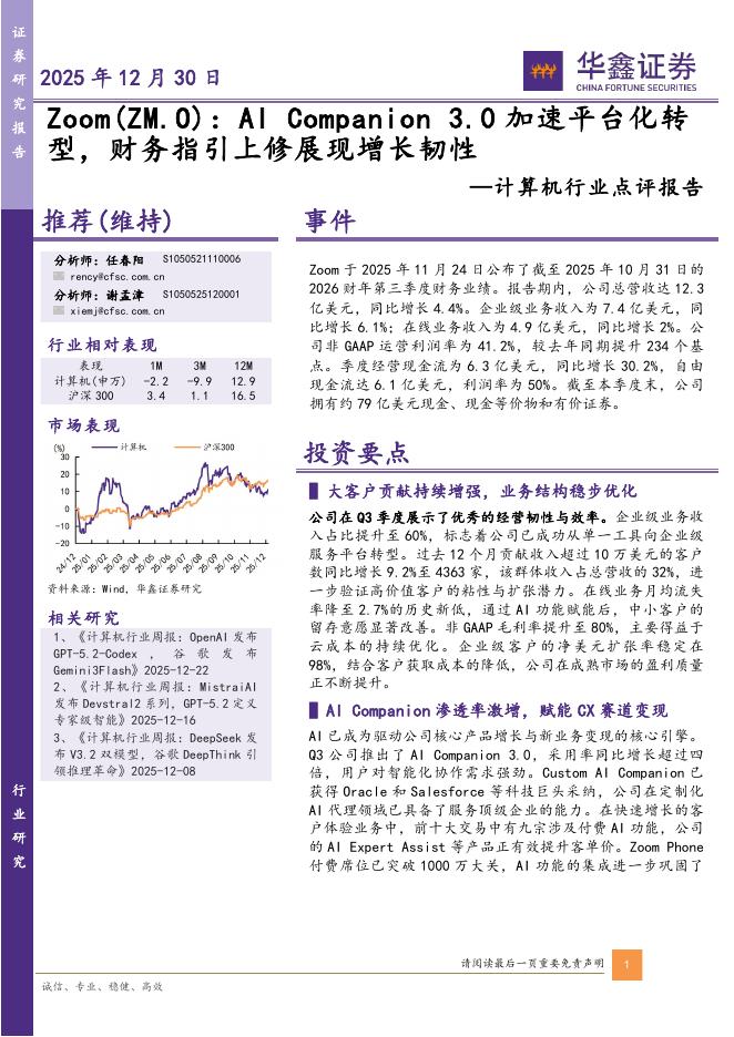 华鑫证券:计算机行业点评报告:Zoom:AICompanion3.0加速平台化转型,财务指引上修展现增长韧性.pdf
