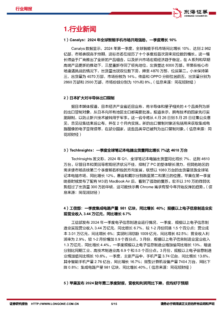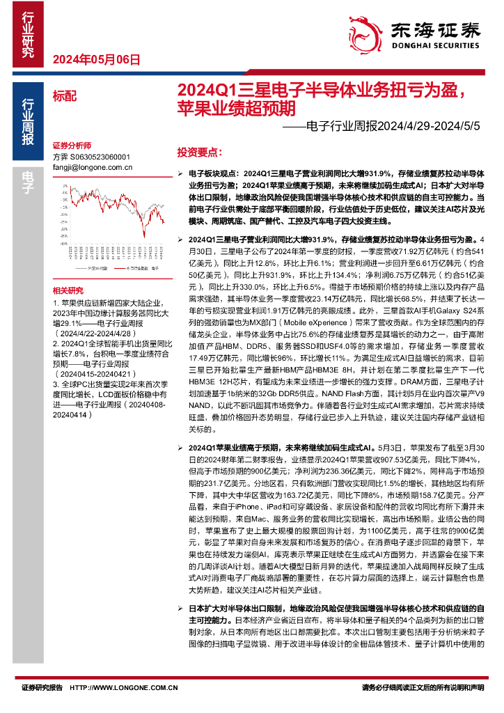 东海证券:电子行业周报:2024Q1三星电子半导体业务扭亏为盈,苹果业绩超预期.pdf