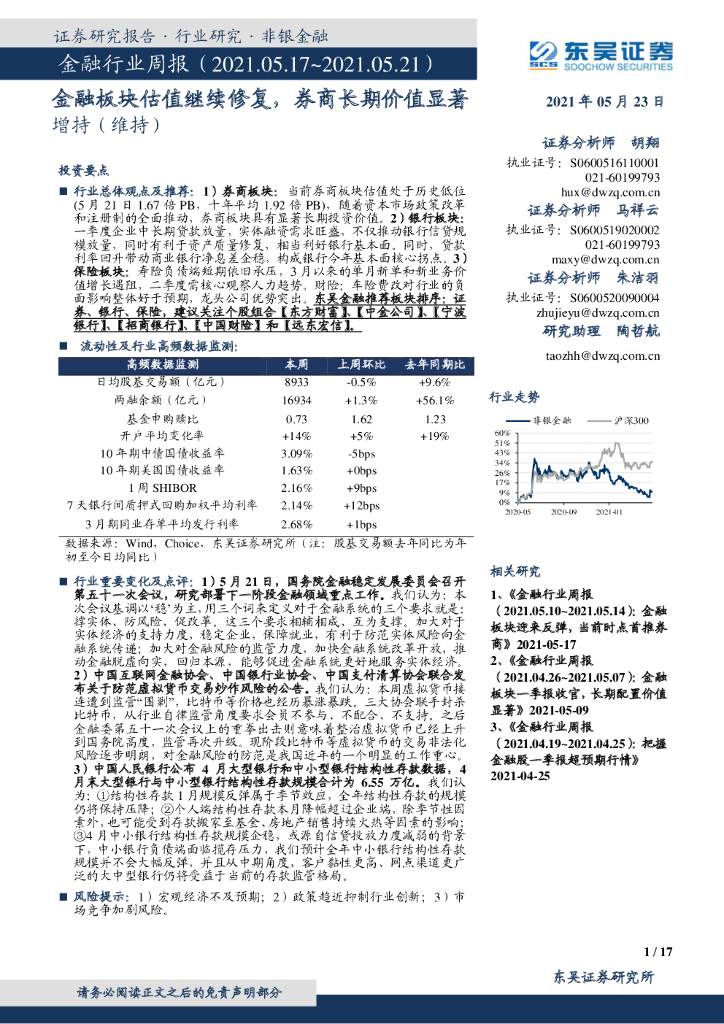 东吴证券:金融行业周报:金融板块估值继续修复,券商长期价值显著.pdf