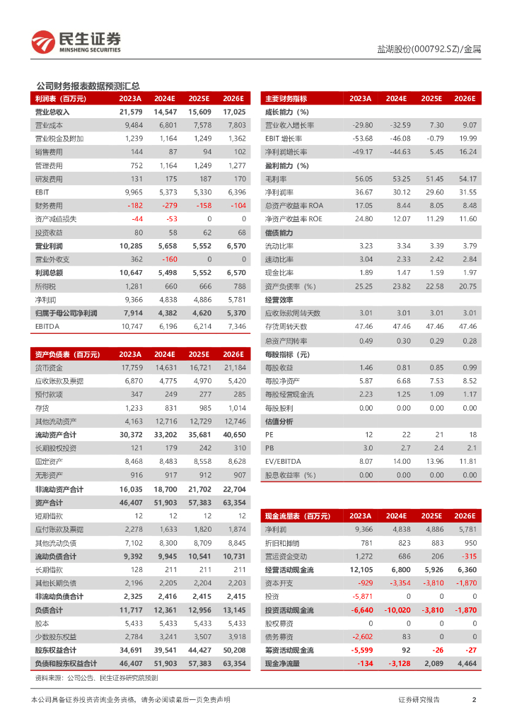民生证券:盐湖股份(000792)-2024年三季报点评:钾肥销量下滑,锂盐新建项目稳步推进.pdf