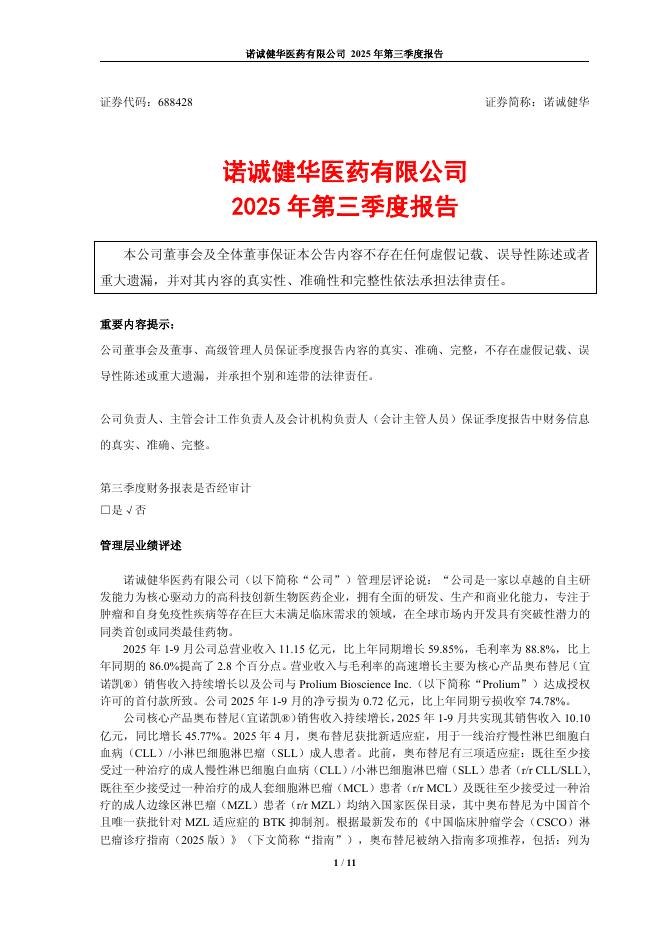 688428-诺诚健华:诺诚健华医药有限公司2025年第三季度报告.pdf