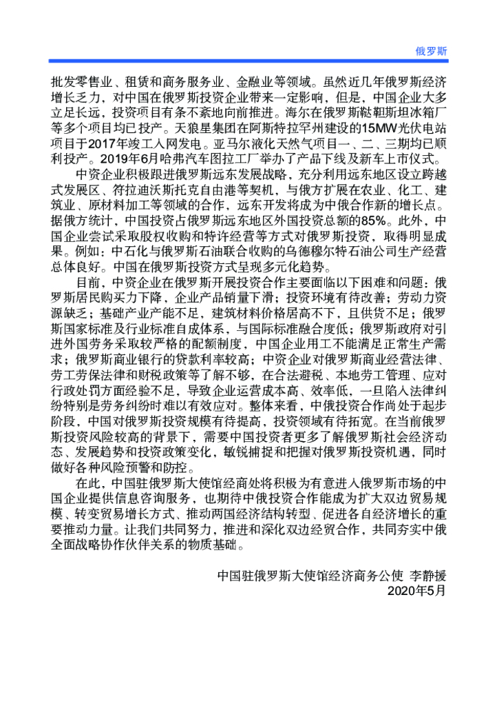 商务部:对外投资合作国别(地区)指南:俄罗斯(2020年版).pdf