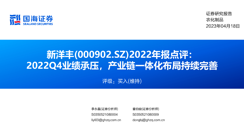 国海证券:新洋丰(000902)-2022年报点评:2022Q4业绩承压,产业链一体化布局持续完善.pdf