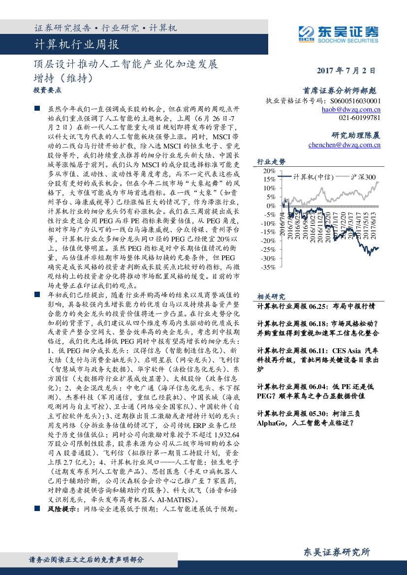 东吴证券:计算机行业周报:顶层设计推动人工智能产业化加速发展.pdf
