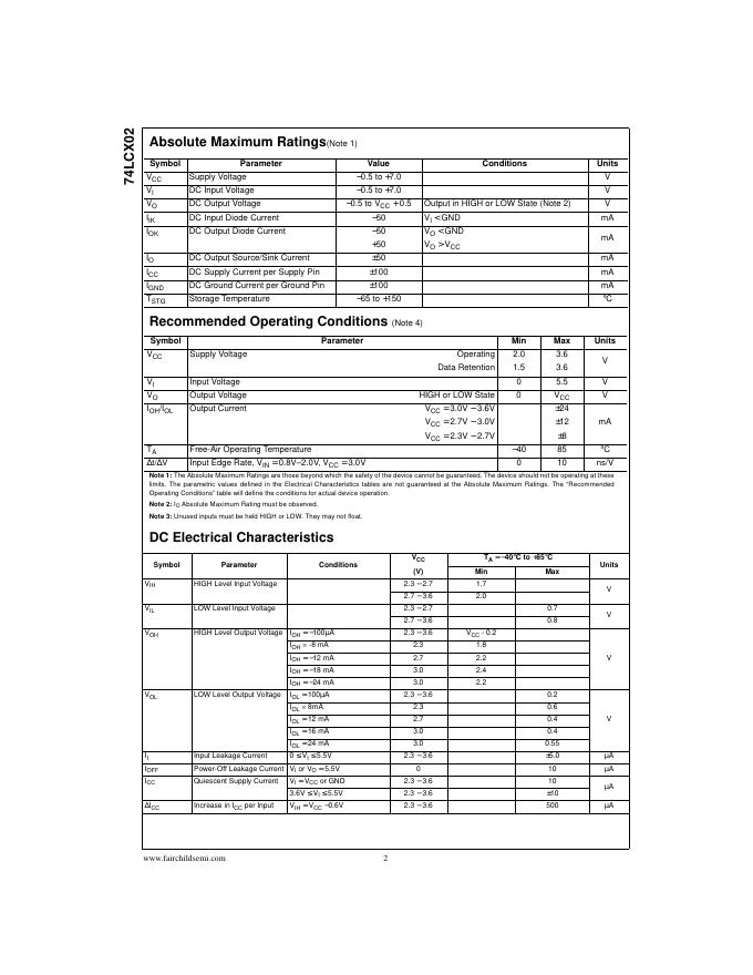 FAIRCHILD semiconductor 74LCX02 Low Voltage Quad 2-Input NOR Gate with 5V Tolerant Inputs 数据手册.pdf