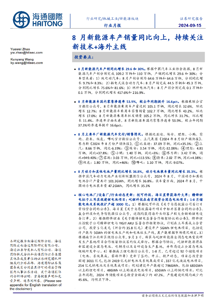 海通国际:新能源板块行业月报:8月新能源车产销量同比向上,持续关注新技术+海外主线.pdf