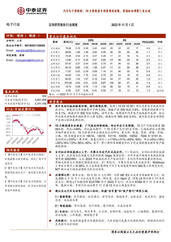 中泰证券:汽车电子周跟踪:10月新能源车销量增速放缓,前期板块调整已有反映.pdf