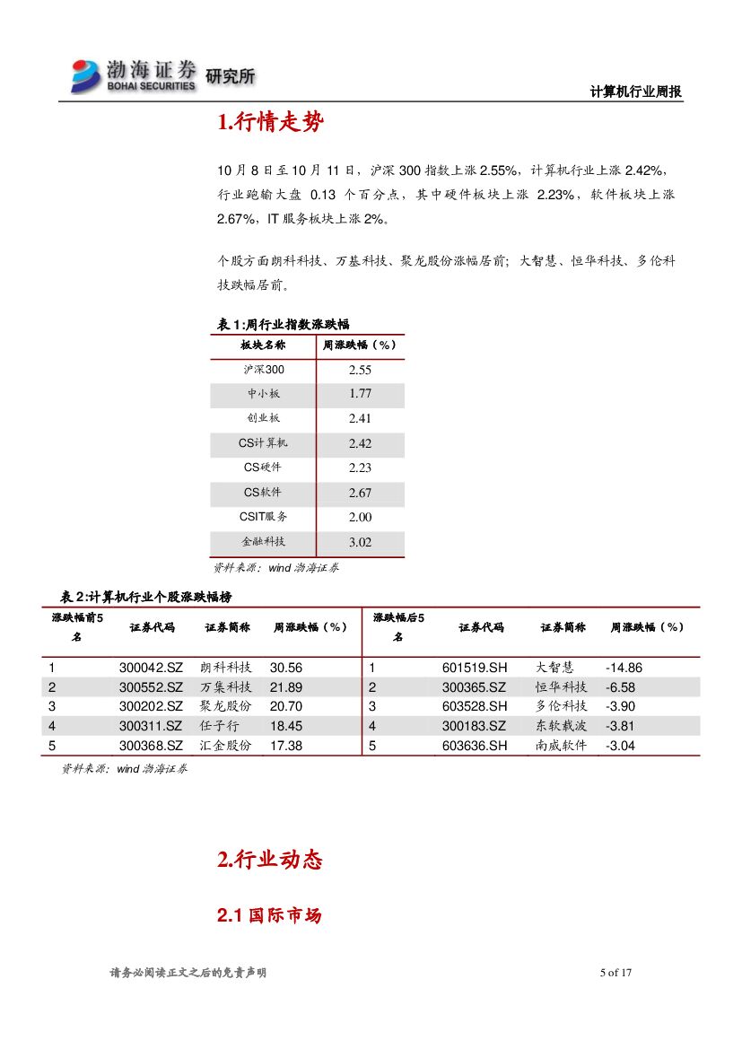 渤海证券:计算机行业周报:金融领域进一步开放,利好金融IT相关厂商.pdf