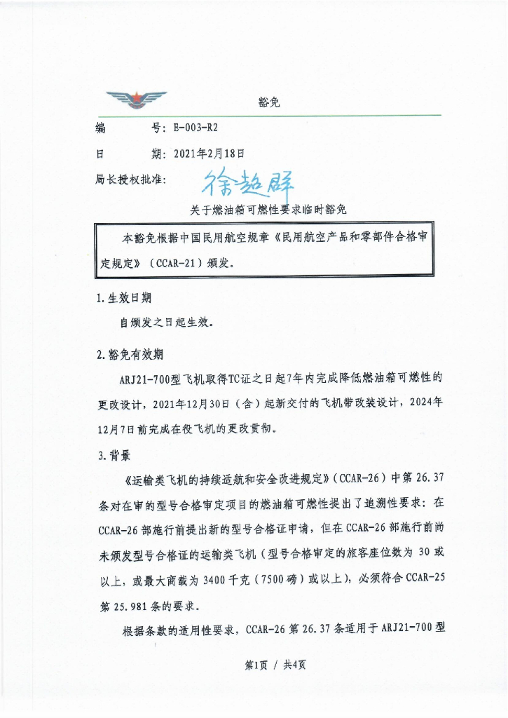 关于燃油箱可燃性要求临时豁免.pdf