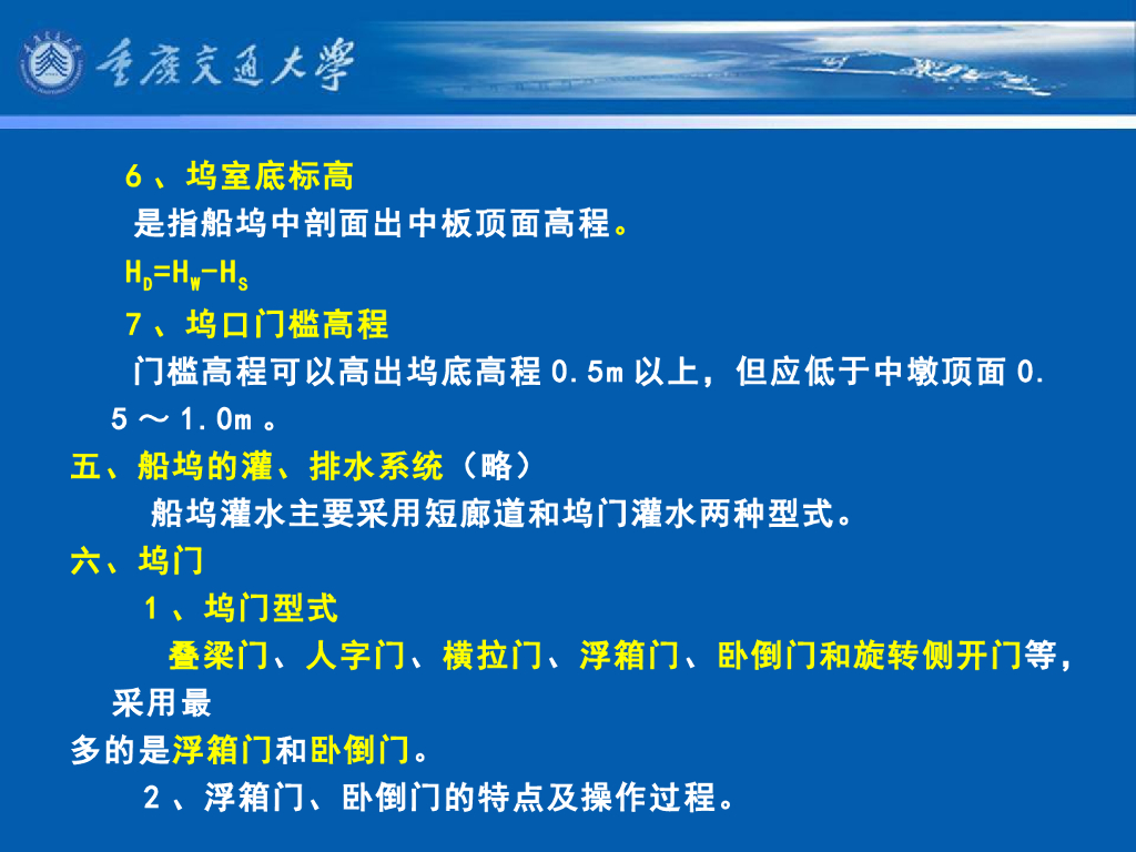 《港口水工建筑物》教学课件-干船坞的布置;干船坞的主要尺度.pdf