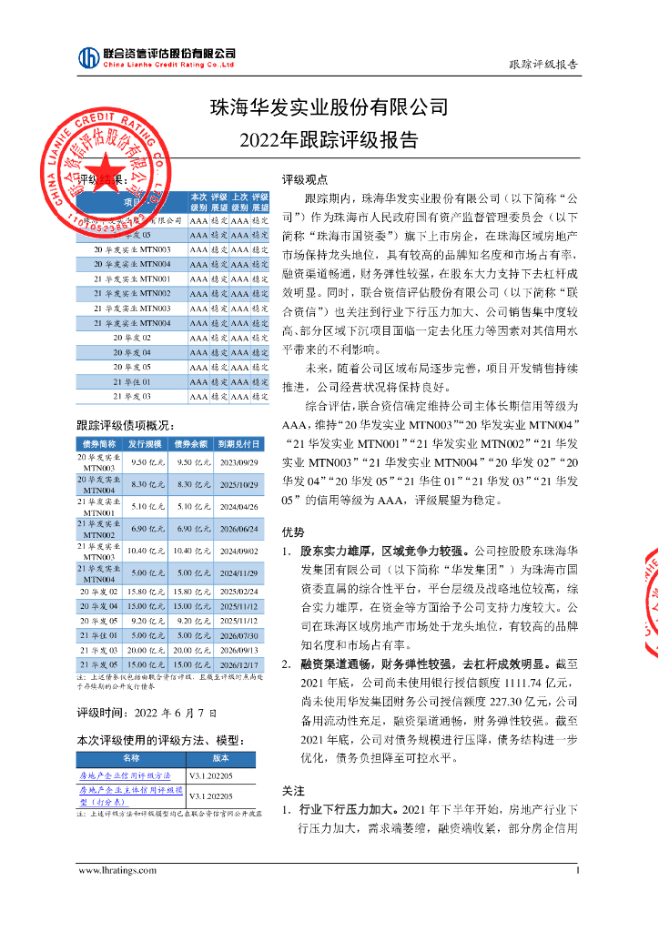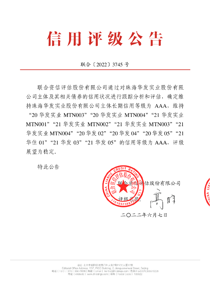 联合资信:珠海华发实业股份有限公司2022年跟踪评级报告.pdf