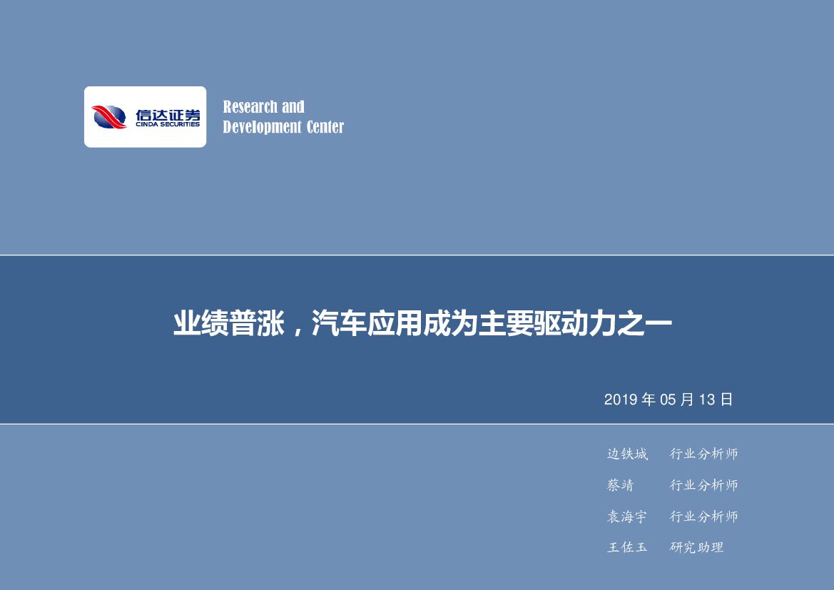 信达证券:电子行业2019年第20周周报:业绩普涨,汽车应用成为主要驱动力之一.pdf