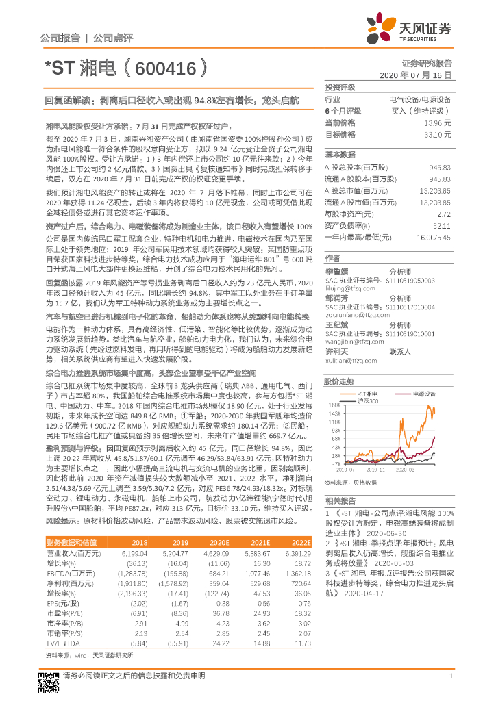 天风证券:*ST湘电(600416)-回复函解读:剥离后口径收入或出现94.8%左右增长,龙头启航.pdf