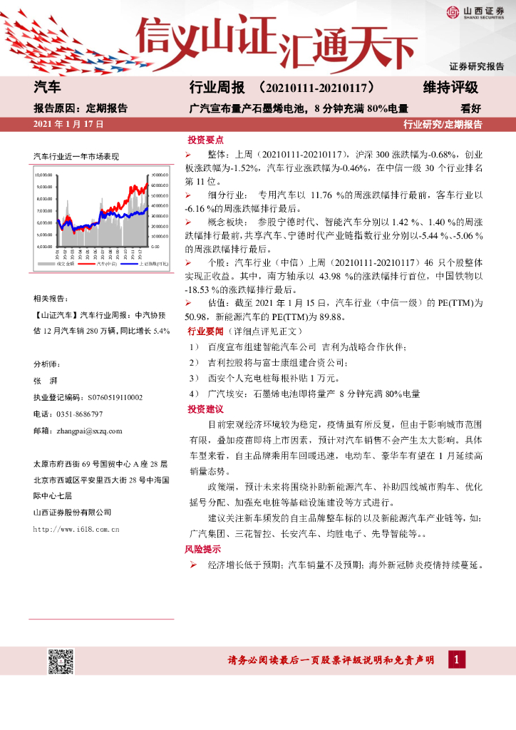 山西证券:汽车行业周报:广汽宣布量产石墨烯电池,8分钟充满80%电量.pdf