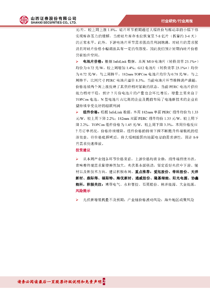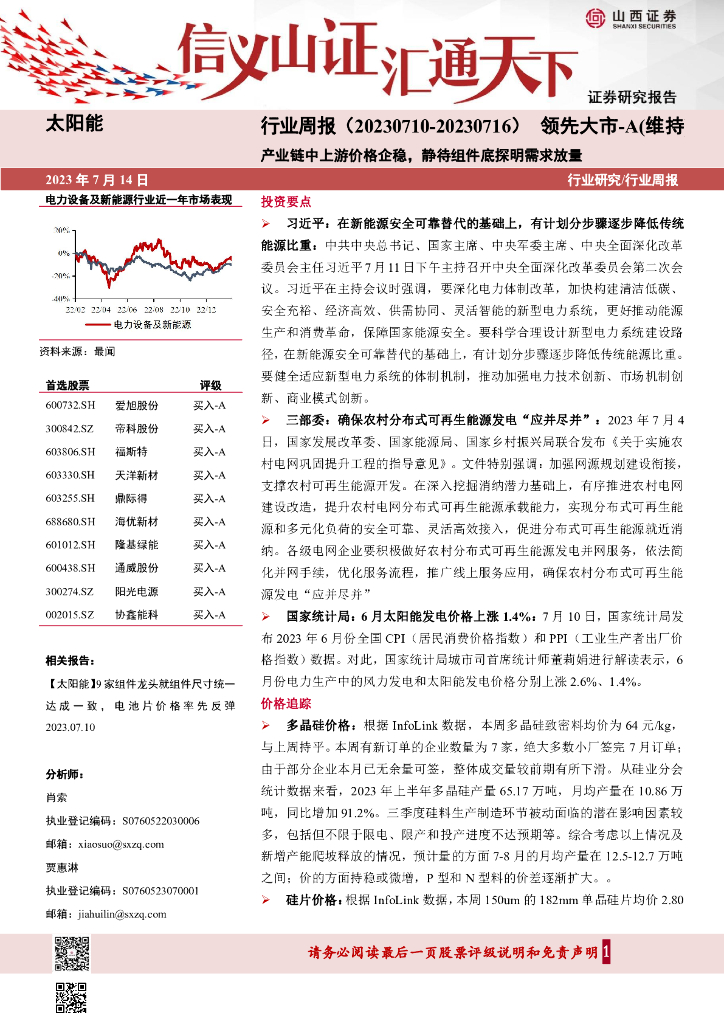 山西证券:太阳能行业周报:产业链中上游价格企稳,静待组件底探明需求放量.pdf
