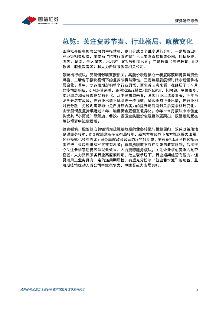 国信证券:社会服务行业专题:财报总结及行情深度复盘-上半年经营环境复杂化 板块β行情特征更为显著.pdf