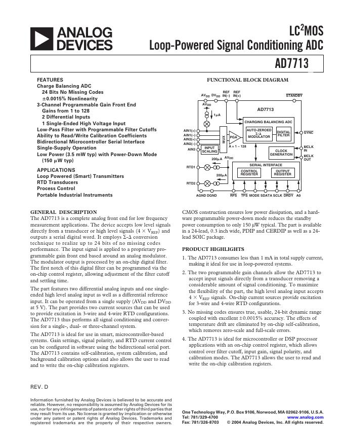 ANALOG DEVICES AD7713 英文产品数据手册.pdf