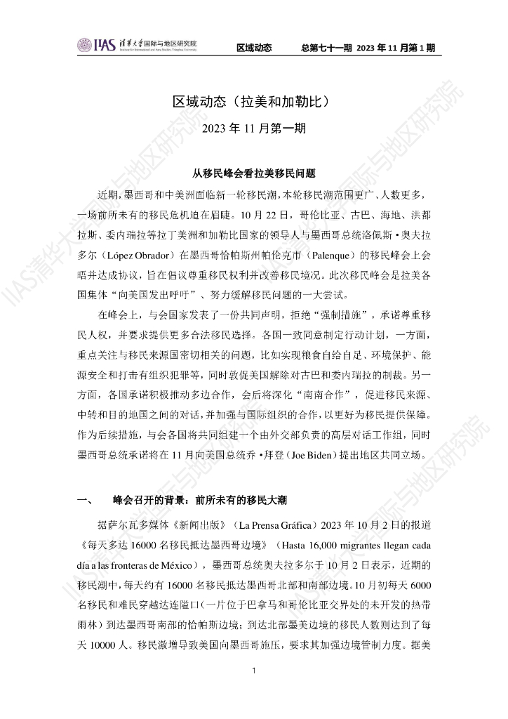 清华大学国际与地区研究院:拉美和加勒比地区《区域动态》2023年11月第1期.pdf
