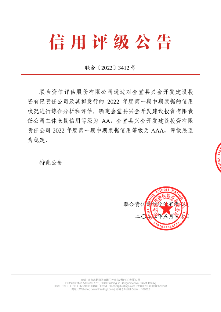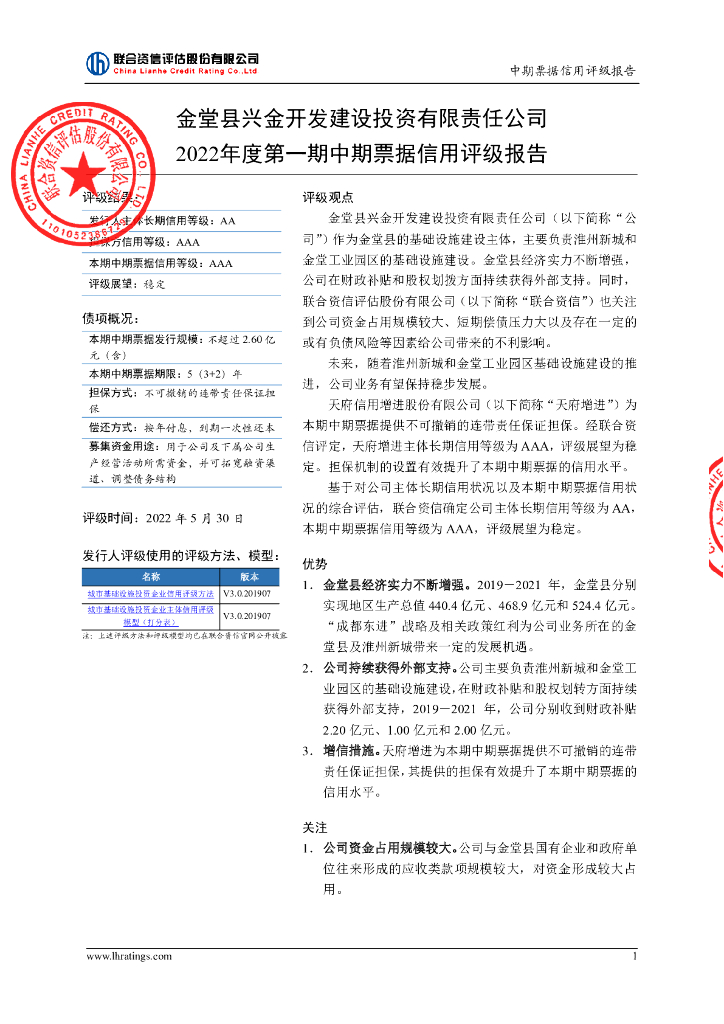 联合资信:金堂县兴金开发建设投资有限责任公司2022年度第一期中期票据信用评级报告.pdf