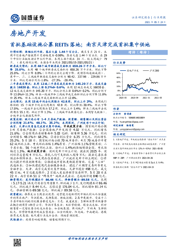 国盛证券:房地产开发行业周报:首批基础设施公募REITs落地;南京天津完成首批集中供地.pdf