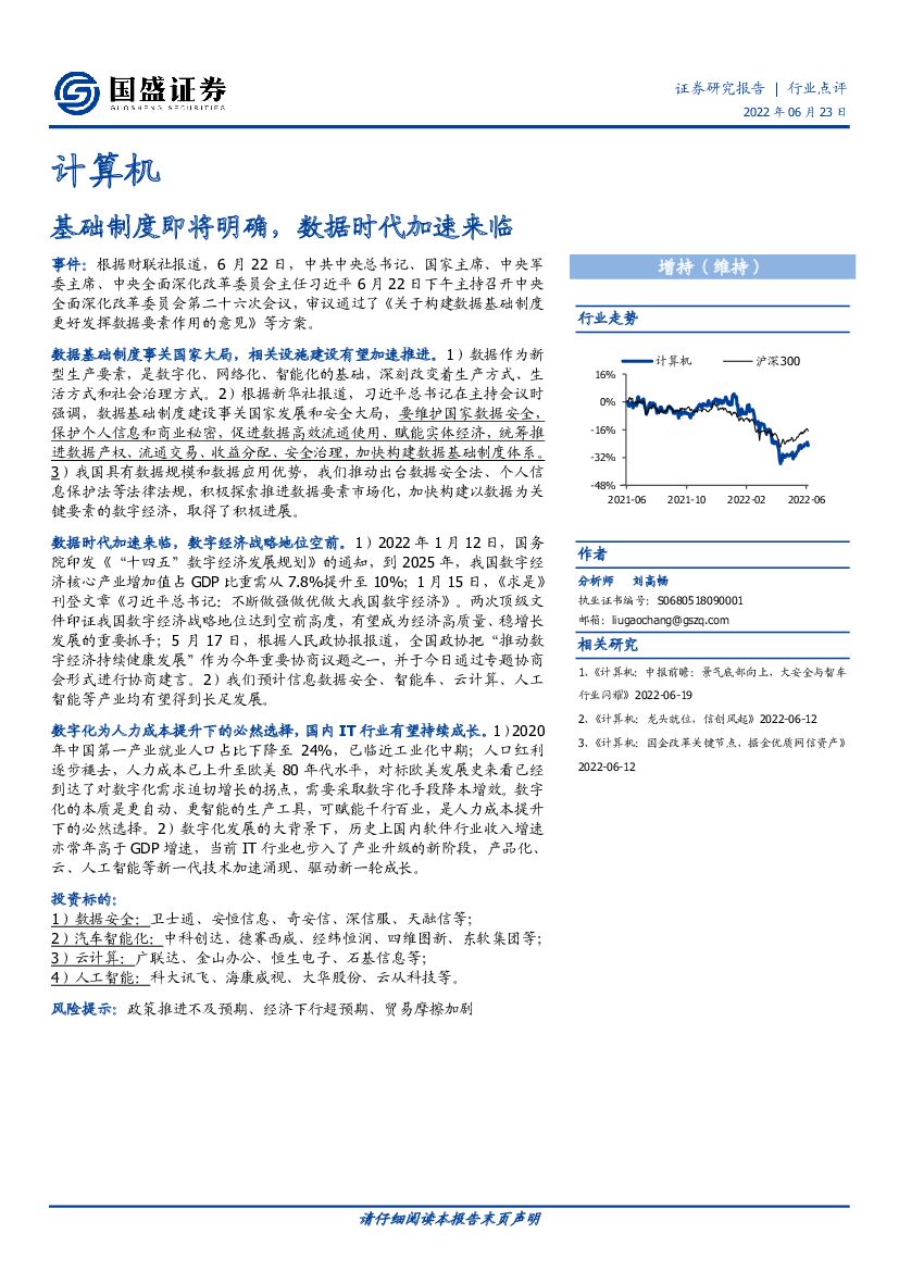 国盛证券:计算机行业点评:基础制度即将明确,数据时代加速来临.pdf