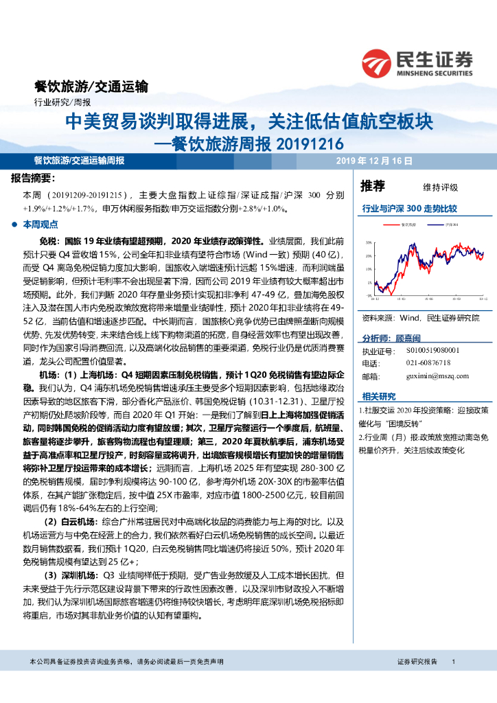 民生证券:餐饮旅游周报:中美贸易谈判取得进展,关注低估值航空板块.pdf