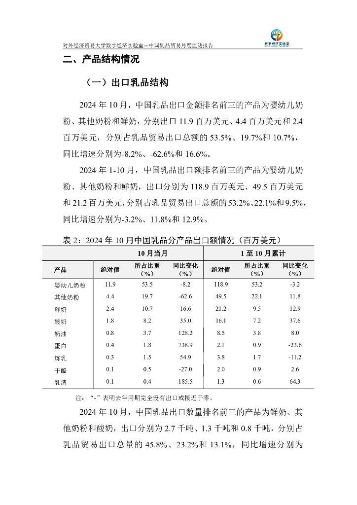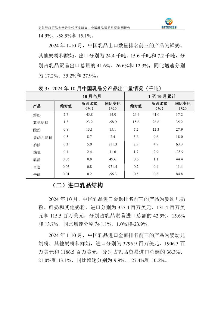 对外经济贸易大学:中国乳品贸易月度监测报告(2024年1-10月).pdf