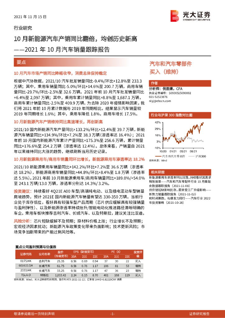 光大证券:2021年10月汽车销量跟踪报告:10月新能源汽车产销同比翻倍,均创历史新高.pdf