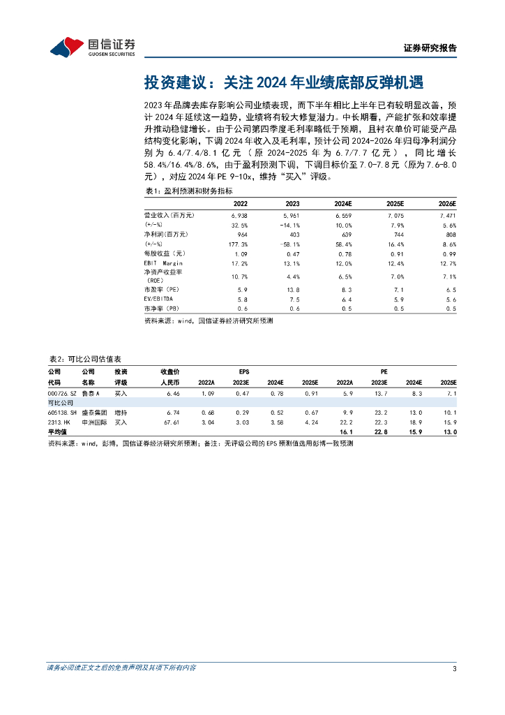 国信证券:鲁泰A(000726)-2023年收入下降14%,下半年毛利率环比提升.pdf