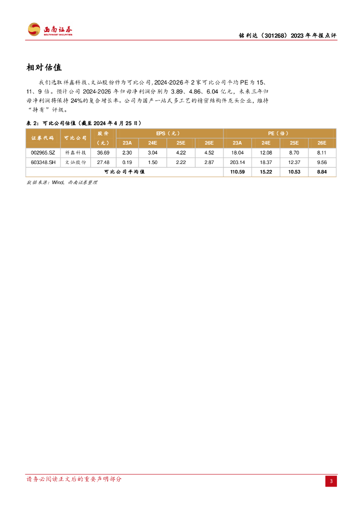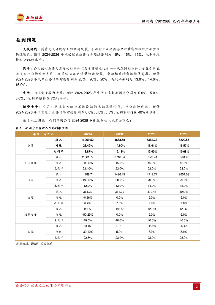 西南证券:铭利达(301268)-2023年年报点评:2023年利润承压,期待汽车行业毛利率修复.pdf