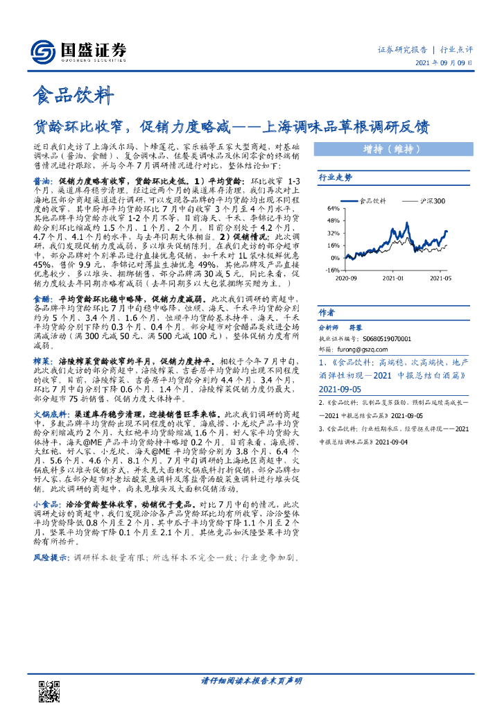 国盛证券:食品饮料行业点评:上海调味品草根调研反馈:龄环比收窄,促销力度略减.pdf
