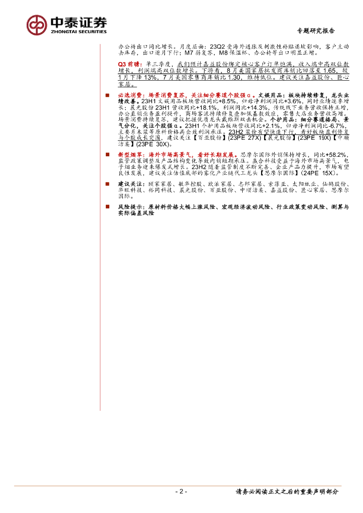中泰证券:轻工行业2023年中报总结及三季报前瞻:行业复苏回暖,关注细分板块龙头.pdf