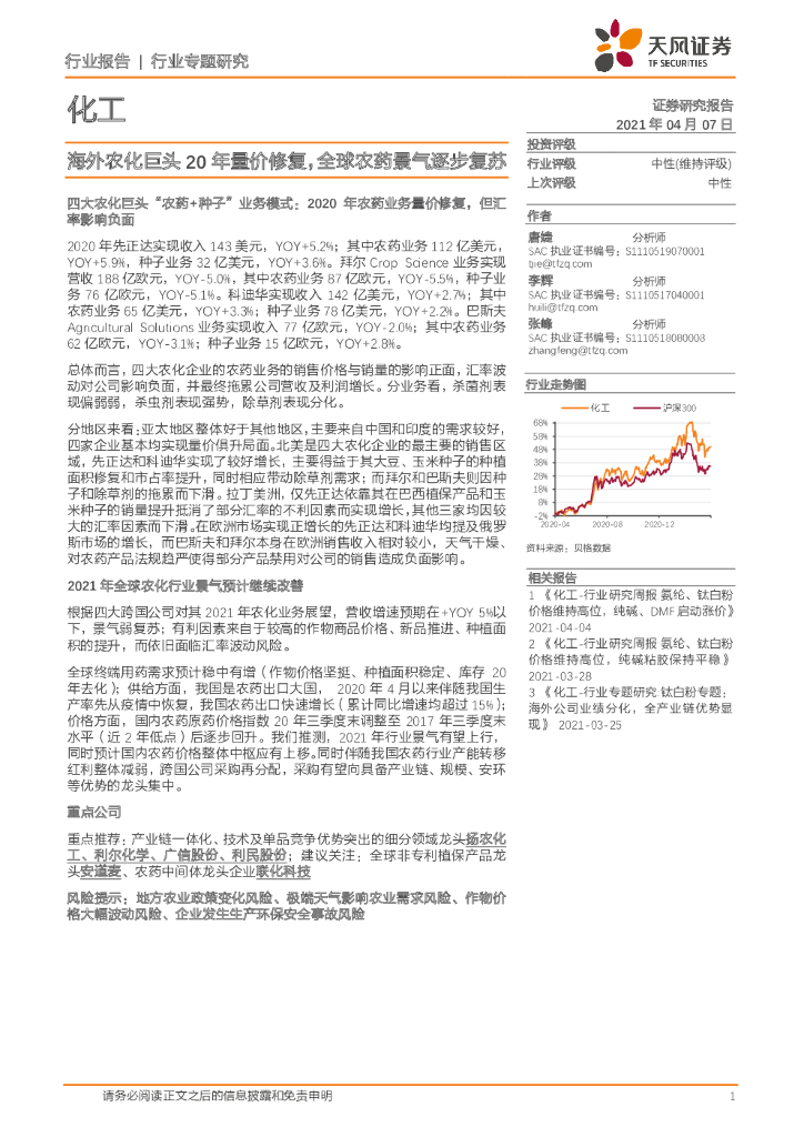 天风证券:化工行业专题研究:海外农化巨头20年量价修复,全球农药景气逐步复苏.pdf
