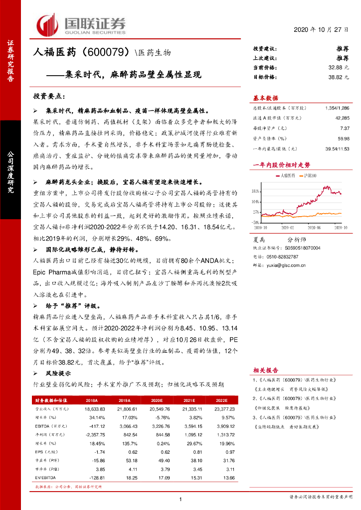 国联证券:人福医药(600079)-集采时代,麻醉药品壁垒属性显现.pdf